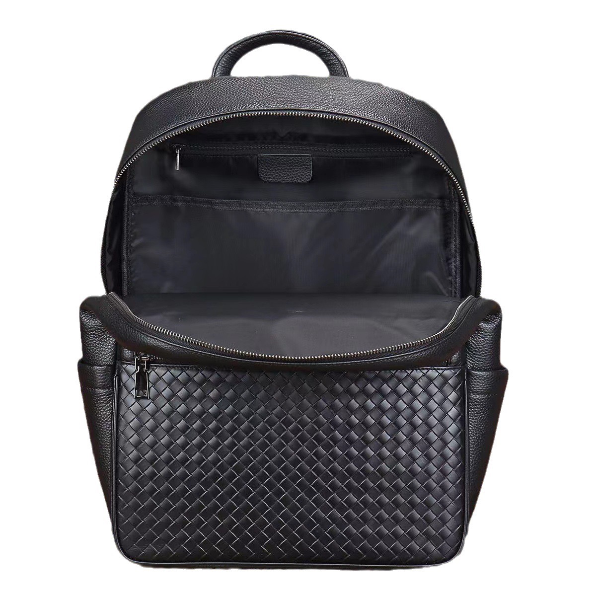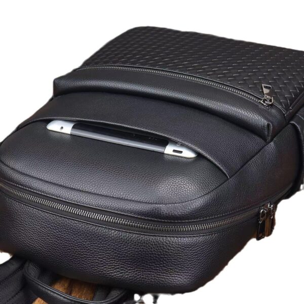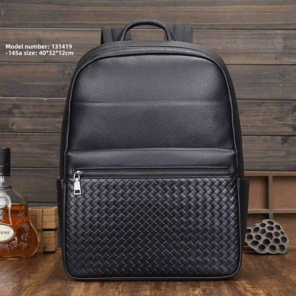 Hoogwaardige herenrugzak van koeienhuid met grote capaciteit, laptoptas voor zakenreizen, stijlvolle bovenste laag koeienhuid, modieus geweven.Deze geweven herenrugzak is gemaakt van echt rundleer en combineert duurzaamheid met een stijlvol design, waardoor hij perfect is voor zakenreizen. De grote inhoud en afmetingen van 30 x 15 x 40 cm bieden voldoende ruimte voor laptops en andere benodigdheden, terwijl het gewicht van 1,5 kg zorgt voor comfortabel draagcomfort. Geschikt voor alle seizoenen, de modieuze look en het hoogwaardige vakmanschap zijn perfect voor moderne professionals.